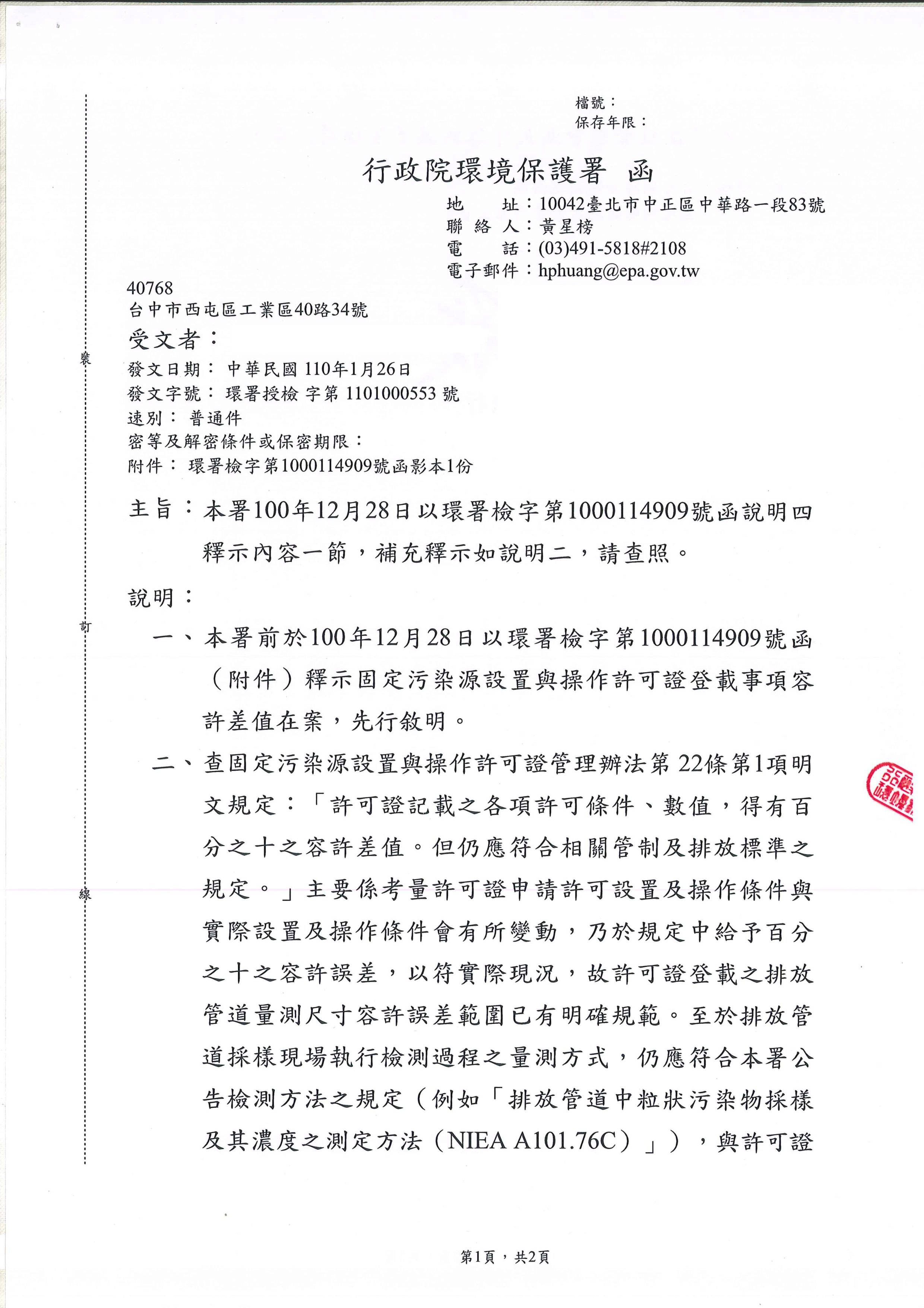 釋示固定污染源設置與操作許可證登載示向容許差值在案,先行敘明 |