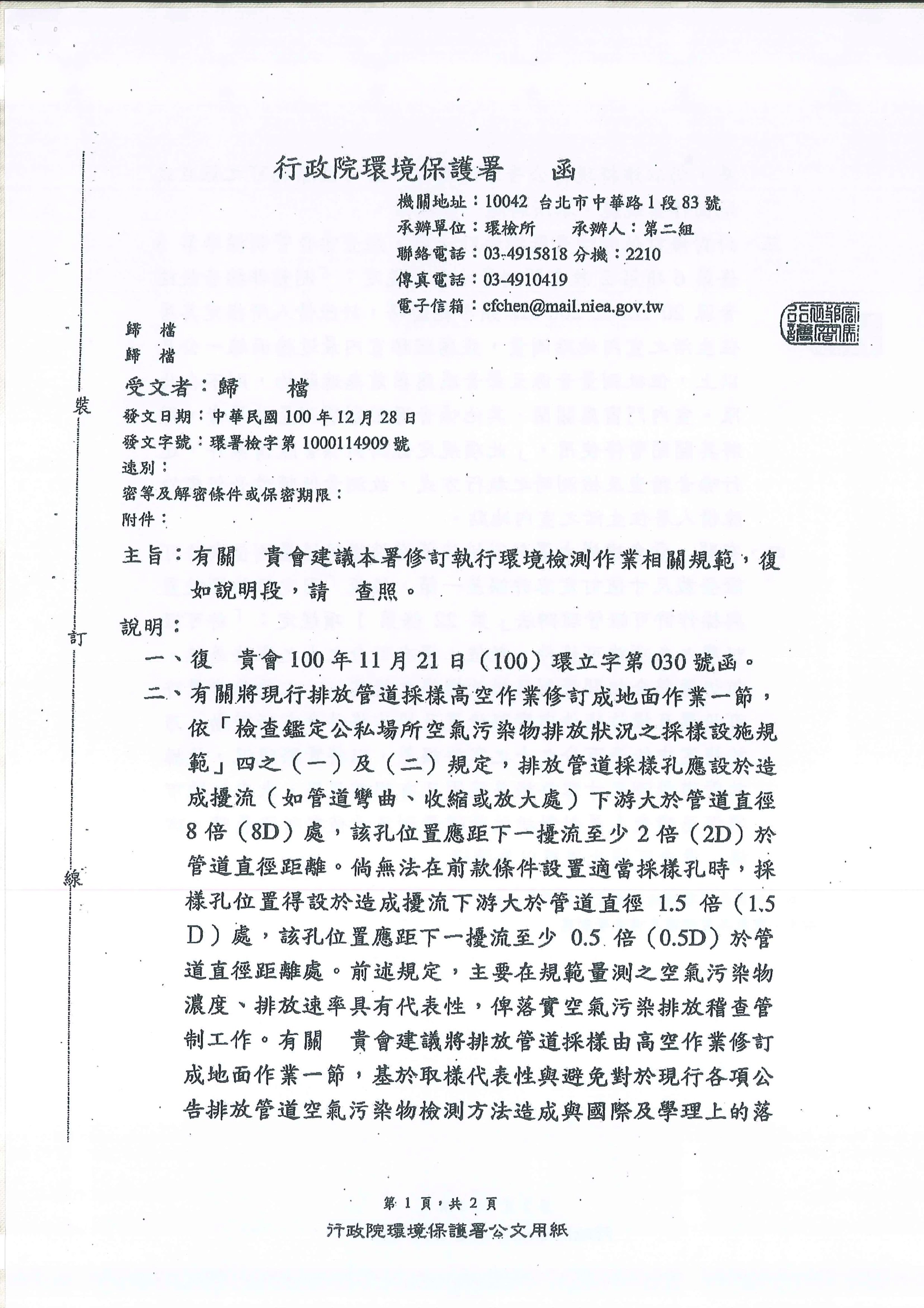 排放管道中粒狀污染物採樣及其濃度之測定方法(NIEA A101.76C)