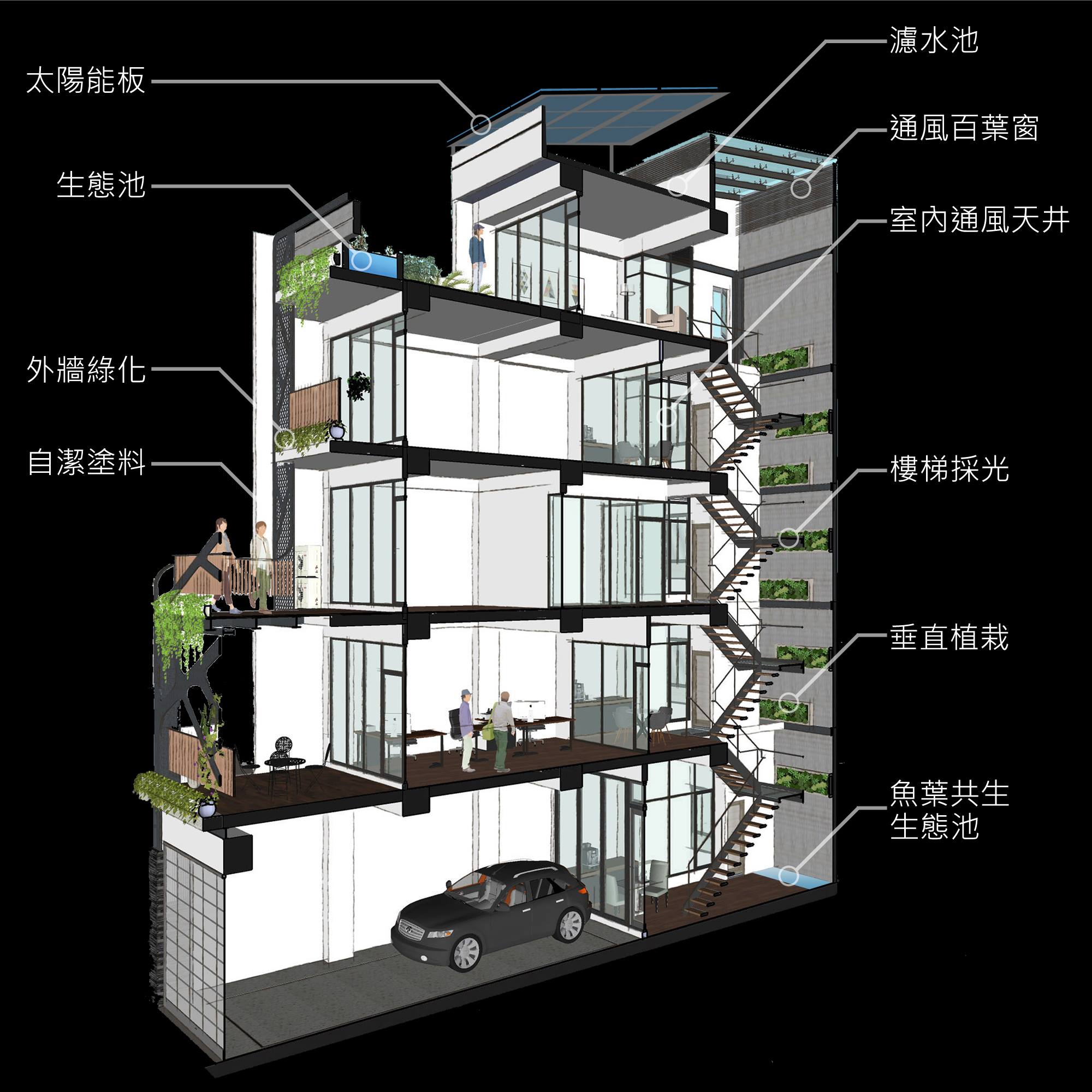 為落實環保節能與再生能源,同心圓服務平台辦公室坐落於以綠為題的節能綠建築,利用植栽牆、通風天井、玻璃採光、太陽能供電及魚菜共生系統,提供陽光、空氣、雨水流動與循環空間,確實落實節能減碳,成為地球的守護者。